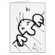 A simple naive black and white line drawing of a man peeking over a fence in "kilroy was here" style will make you smile! Choose you favourite background colour.