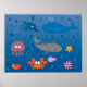 Blue poster for kids with a funny, cute and adorable cartoon illustration of fish, crab, jellyfish, shark, dolphin, starfish & whale on an ocean background with bubbles. If you need any assistance with customizing your product please contact me through my store and I will be happy to help. Please visit my Molly Sky Designs store for loads of fun, cute & retro illustrations on a wide range of customizable products / gifts for friends, family , weddings & business.
