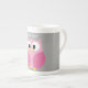 Cute Cartoon Owl - Pink and Grey Custom Name Bone China Mug