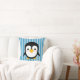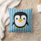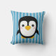 Cute Cartoon Penguin Design Blue Stripes Pattern Cushion