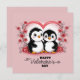 Cute Cartoon Penguin Lovers Hearts Valentine’s Day Holiday Card