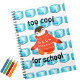 Add a splash of fun to your kids' school days with this notebook, featuring a cute cartoon penguin in a wooly red-orange sweater and an all-over pattern of blue ice cubes. Text on front reads "too cool for school." Funny, contemporary and trendy, this notebook is great for back to school and sure to put a smile on your child's face!