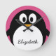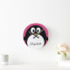cute cartoon penguin with pink background round clock