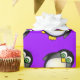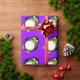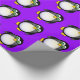 Super cute cartoon penguin with green googly eyes on a purple background. Perfect wrapping paper for kid's birthdays.