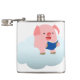Cute Cartoon Pig Reader on Cloud Hip Flask