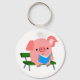 Cute Cartoon Pig Reading on a Bench Keychain