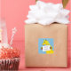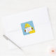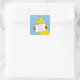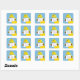 Sticker with cute cartoon pony image. Pony is holding a label template which can be personalised to add your name or a message of your own choice. The horse is pictured against a bright blue background. Handy sticker for any horse lover.
