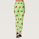 Cute Cartoon Red Cardinal with Flowers Leggings