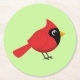 Cute Cartoon Red Cardinal with Flowers Round Paper Coaster
