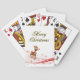 Cute Rudolf the red nosed reindeer on a white background with a red snowy bottom embellishment. Cute and fun Christmas design for your playing cards.