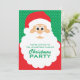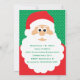 A fun design for inviting family and friends to your upcoming Christmas Party, featuring a cute cartoon Santa Claus on a green background with polka dots. The information on both sides of the invitation are fully customisable for the details of your own Christmas Celebration.