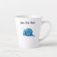 This Latte mug has a cute cartoon type snail with white eyes and a big smile with an aqua blue shell in a tie dye pattern. Customise your text with the template.