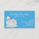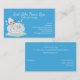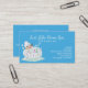 Cute spa business card done in turquoise blue, with whimsical graphics of a cartoon lady in a bubbly bathtub. Personalise the white text to suit your needs.