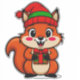 Festive holiday illustration of a cheerful squirrel in a Santa-style hat holding a wrapped gift. Perfect for Christmas-related designs, greetings, and seasonal promotions.