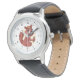 Watch with an illustration of a cute red squirrel holding a peanuts, with a beige circle on a brown background, a cute animal design for kids by Maxi Harmony