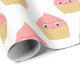 Cute Cartoon Strawberry Cupcake On White Wrapping Paper