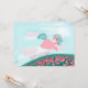 Pink and mint cartoon unicorn pastel colours illustration. Hopping over the meadow and playing with clouds little unicorn is full of positive energy. This cute design can make little girls feel happy and joy. Personalised inside text.