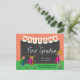 Welcome your students back to school with this whimsical postcard. The design features cute cartoon illustrations of children with backpacks and a teacher writing on a chalkboard welcoming her students to first grade. Personalise with the teacher's name and school.