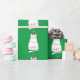 Festive wrap features hand drawn cute white cat with a string of Christmas lights wound around them on green background