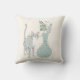 This stylish throw pillow features a pretty illustration of a grey cat standing next to a teal green vase filled with florals and botanicals. Personalise it with your name in handwritten script typography. Great gift for cat lovers.
