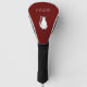 Cute cat cartoon personalised red golf head cover with a winking kitty hand drawn sketch and script typography design. With white lettering, you can add your own name. A fun sports item for the pet or animal lover.