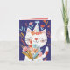 A smiling, happy cat is celebrating, wearing a party hat, and holding a bunch of flowers.