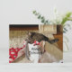 Photo of a cute brown tabby cat enjoying Christmas presents, is printed on custom holiday cards. The front has Meowy Christmas on it. The back says, Wishing you a purr-fect Christmas and a bright and happy New Year. Both text options can be customised with your own greeting and message. Thank you for shopping at CherylsArtPhotos on Zazzle.
