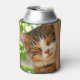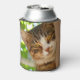 Portrait photo of a cat with clear green eyes climbing a tree on a sunny day.