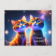 Cute cat couple under the starry sky - postcard