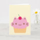 A kawaii cat cupcake decorated with pink frosting and a cherry on top! Lots of space for your own text.