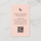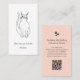 QR code pet sitter business card with a cute black and white winking cat drawing design on a white and pink background. With customisable lettering, you add you own information. You also add your website to the QR code field. Great for promoting your pet services business!