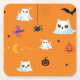 Cute Cat ghost sheet Halloween pumpkin party Square Paper Coaster