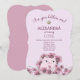 Cute, cartoon, kawaii cat girl birthday invitation with purple flowers. Are you kitten me?