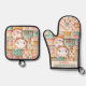 Cute Cat Home Patchwork Cosy Pastel Custom Name Oven Mitt & Pot Holder Set