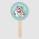 Cute Cat in Snow Gear with Snowman Art Hand Fan