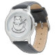 The circular watch face beautifully frames the rounded teacup illustration, creating a balanced and eye-catching look. The clean monochrome artwork keeps it modern and versatile, making it easy to pair with casual outfits, cozy sweaters, or even smart-casual wear.