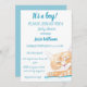 It's a boy! Cute ginger kitty illustration blue baby boy shower invitation. Hand painted by myself kitten artwork. Rustic, cat, floral watercolor. Nature, pets, illustration baby shower invitation. Floral design. Personalise it with your details.