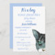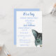 It's a boy! Cute grey kitty illustration baby boy, gender neutral baby shower invitation. Baby shower. Rustic, cat, watercolor painting by Monika Howarth. Nature, pets, blue illustration baby shower invitation. Personalise it with your details.