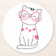 Cute Cat Lover Gift Pink Glasses Kitten Nerd Kitty Round Paper Coaster