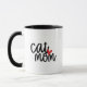 charming cat mum coffee mug,bold yet playful and eye-catching,trendy yet modern rounded script,black and white with red,cute and whimsical heart,for cat lovers,gift for feline enthusiasts,woman's love for cats kittens,fun stylish heartfelt tribute for her,pet parent drinkware cup,
