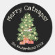 Cute Cat on Chistmas Tree Merry Catnaps! Black Classic Round Sticker