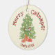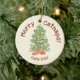 Bring a touch of feline charm to your holiday décor with the Cute Cat on Christmas Tree Merry Catnaps! Ceramic Ornament. This adorable keepsake showcases an orange cat peacefully napping atop a festively decorated Christmas tree, adorned with golden ornaments and nestled above two colourful presents. Above the scene, the text reads "Merry Catnaps!", and below there's a customisable line to add your cat’s name and the year for a truly personal touch. The back of the ornament offers space for a family photo or a picture of your beloved pet, making it a treasured memento for years to come. Perfect for cat lovers and a delightful way to celebrate the holidays with a bit of humour and warmth.