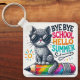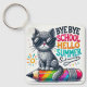 Cute Cat on Pencil Illustration Celebrating Summer Key Ring