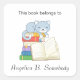 Cute Cat on top of a Book Stack - Bookplate Square Sticker