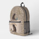 This Cute Cat backpack would be a great gift idea for your niece or nephew. It features a cat and a butterfly on a light brown background with leaves. Also suitable for Kids, Teen Boys or teen Girls who love nature. The theme is boho style, earthy tones, cottage tones with some leaf patterns. It has a funny part to it too with a mouse head sticking out of the pocket.