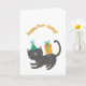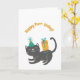 Celebrate in purr-fect style! This adorable design features a cheerful cartoon black cat wearing a party hat with the playful message: “Happy Purr-thday!” Inside, the fun continues with the sweet pun: “Have a paws-itively wonderful day!”