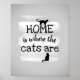 This cat quote poster grey and white paint stroke design has text home is where the cats are for cat lovers wall art decor in home or office.
