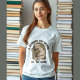 An adorable cat holding an open book, with a funny reading saying that says "I Closed My Book to Be Here" for cat lovers, introverts, bibliophiles, and book lovers who would rather be reading.