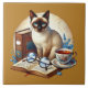 Cute cat reading nook library book lovers ceramic tile
