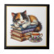 Cute cat reading nook library book lovers ceramic tile